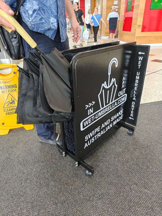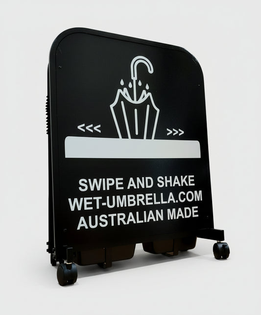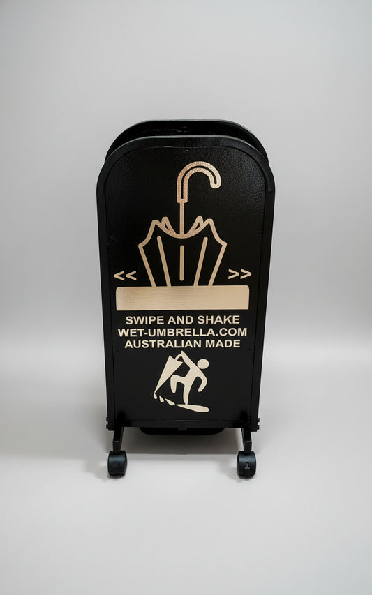 Wet Umbrella Dryer Wet Floor Model Aluminium Australian Made White Stickers